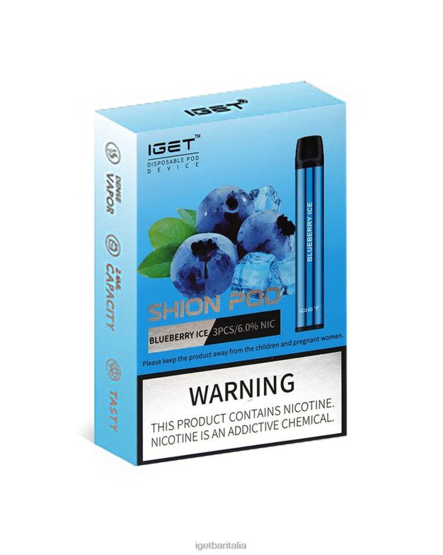il blueberry ice iget shion è una miscela perfetta di dolcezza piccante del mirtillo con un finale ghiacciato e rinfrescante al mentolo.