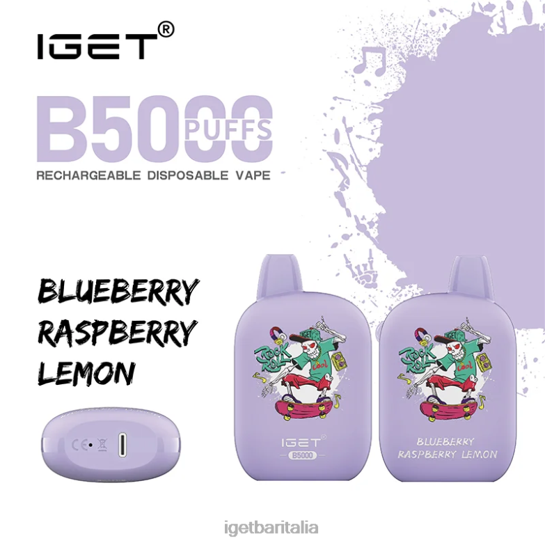 iget b5000 mirtillo lampone limone: un medley vibrante di mirtilli dolci, lamponi aspri e limone piccante.