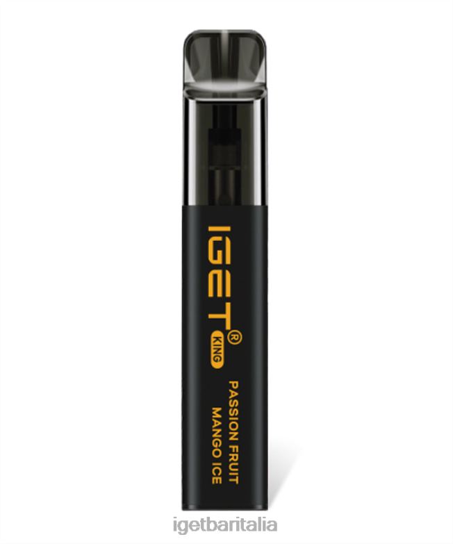 il passion fruit mango ice iget king offre un tocco di dolce mango ed esotico frutto della passione con un finale ghiacciato e rinfrescante al mentolo.
