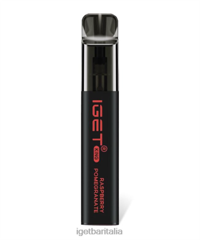 l’iget king al lampone e melograno contiene una miscela rossa e succosa di lamponi dolci e melograni.