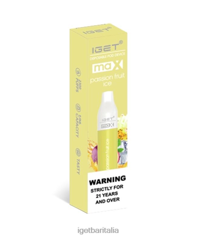 Il frutto della passione ice iget max offre un tocco di frutta dolce ed esotica con un sapore delizioso, leggermente aspro e un finale ghiacciato e rinfrescante al mentolo.