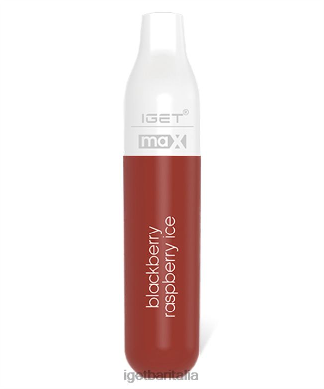 Iget Max Blackberry Raspberry Ice combina more e lamponi per un effetto fruttato, mescolato con un sottotono di mentolo.
