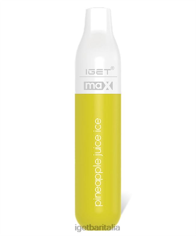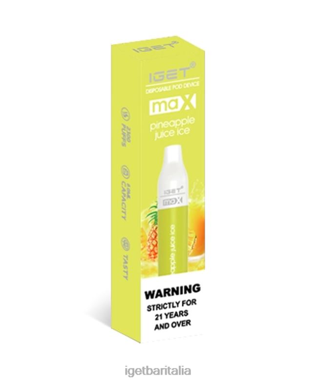 il succo d’ananas ice iget max offre il gusto di un ananas tropicale fresco e succoso con un finale ghiacciato al mentolo.