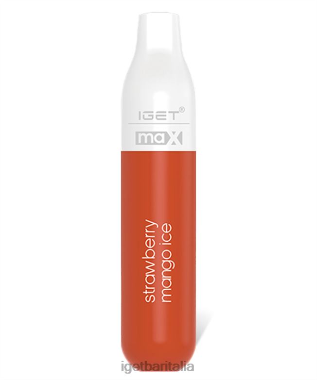 il ghiaccio al mango e fragola iget max è una rara miscela di due frutti popolari con un accenno di sottotono ghiacciato di mentolo.