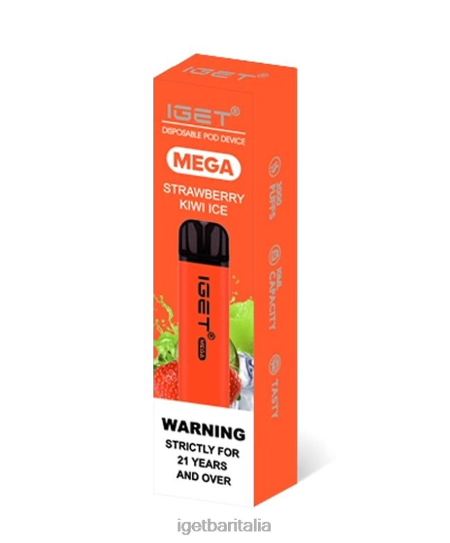 l’iget mega fragola e kiwi è un mix equilibrato di sapori succosi e freschi di fragola e kiwi dolce con un sottofondo di mentolo ghiacciato.