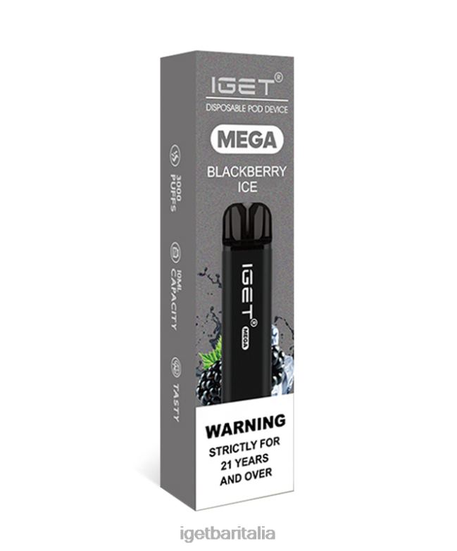 l’iget mega con ghiaccio alla mora cattura il sapore dolce e succoso delle more mature senza traccia di amarezza e un finale ghiacciato al mentolo.