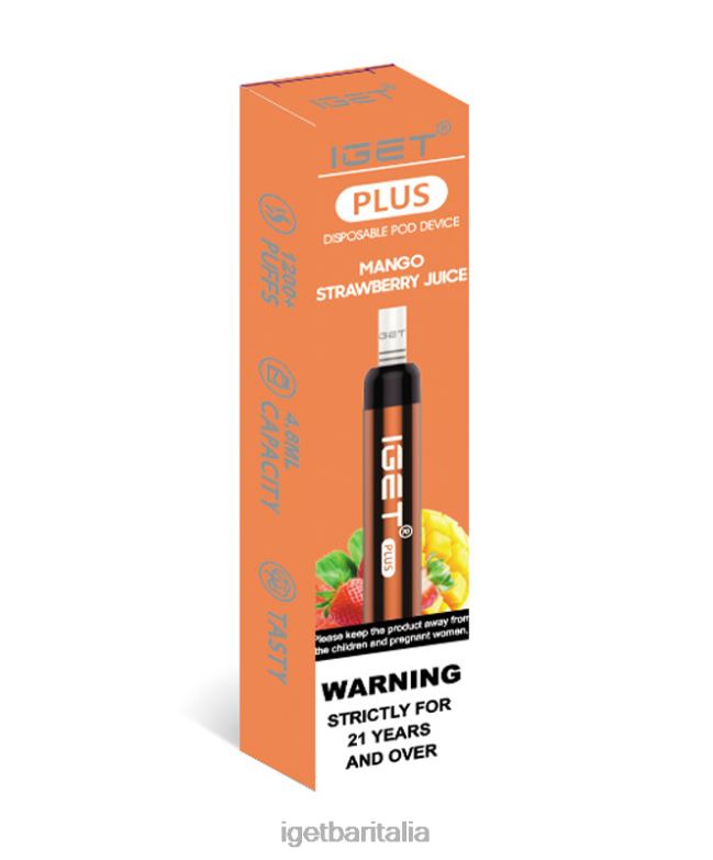 il succo di mango e fragola iget plus offre un tocco di dolce mango e succose fragole rosse.